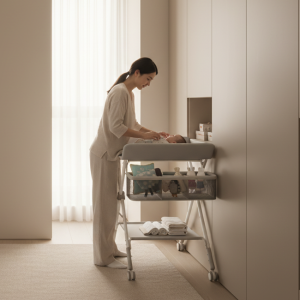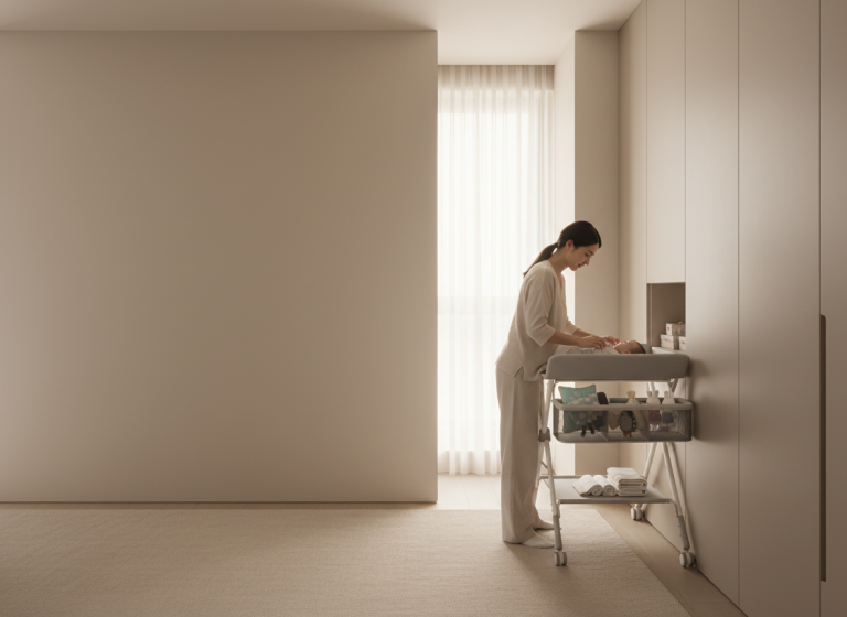 This changing station’s sleek and modern design fits in well to my home. It’s super handy as well, I can keep diapers, wipes, creams, even extra clothes all in one place. Practical and pretty!